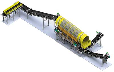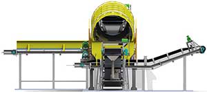Trommel Screens A Rotary trommel screen, also known as a rotary screen, is a mechanical screening machine used to separate materials, mainly in the mineral and solid-waste processing industries.It consists of a perforated cylindrical drum that is normally elevated at an angle at the feed end. Physical size separation is achieved as the feed material spirals down the rotating drum, where the undersized material smaller than the screen apertures passes through the screen, while the oversized material exits at the other end of the drum. This tumbling action to size and separate is beneficiala variety of customers including those looking to recover metallics after incineration, to reclaim wood chips in sewage sludge composting, for accurate size separation of difficult to screen materials, in municipal solids waste and resource recovery,and to separate and wash ores, rock, and other fine materials.